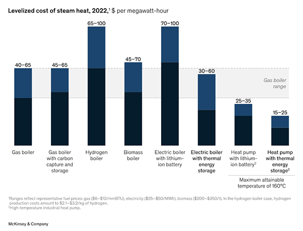 El vapor limpio obtenido mediante electricidad y almacenamiento térmico puede ser más económico que las calderas de gas convencionales y otras soluciones bajas en carbono