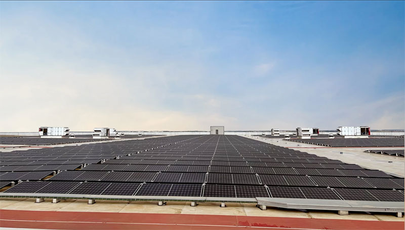 Amazon presentó hace un par de semanas en su centro logístico de Dos Hermanas (Sevilla) su instalación de energía solar in situ más grande de Europa. El centro ha sido equipado con más de 13.300 módulos solares, con una capacidad total de 5,26 MW de energía renovable. Los paneles se distribuyen entre el techo del edificio y las marquesinas del aparcamiento, y se espera que produzcan más de 6.000.000 kWh al año, el equivalente al consumo eléctrico anual de más de 1.500 hogares españoles.
