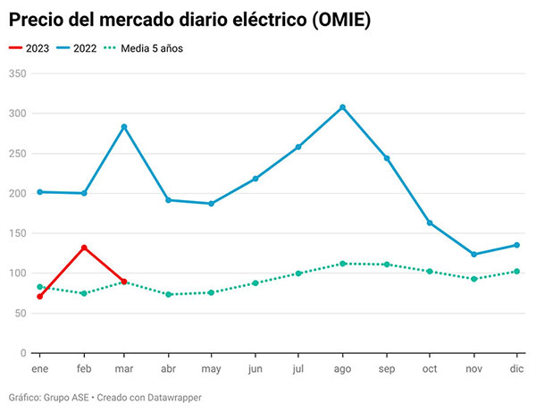 De acuerdo con el Informe del mercado energético de Grupo ASE correspondiente al mes de marzo, el precio de la electricidad bajó, el mes pasado, un 32,14% respecto a febrero, la tendencia a la baja de los precios del gas, la reducción de la demanda y el aumento de la producción fotovoltaica; explican esta reducción del precio. La volatilidad sigue aumentando mientras la producción fotovoltaica altera la curva de los precios y, en las horas solares, dispara la hidráulica de bombeo y las exportaciones.