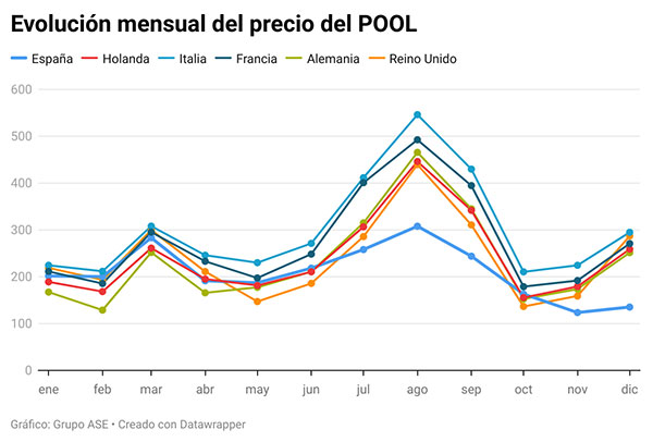 Los analistas de Grupo ASE señalan que la volatilidad ha sido extrema en diciembre, impulsada por unas condiciones climatológicas anómalas, por la reducción de la demanda energética, por el aumento del aporte renovable y por la incertidumbre en los mercados de gas. Diciembre empezó por encima de 250 €/MWh y ha terminado cercano a cero.
