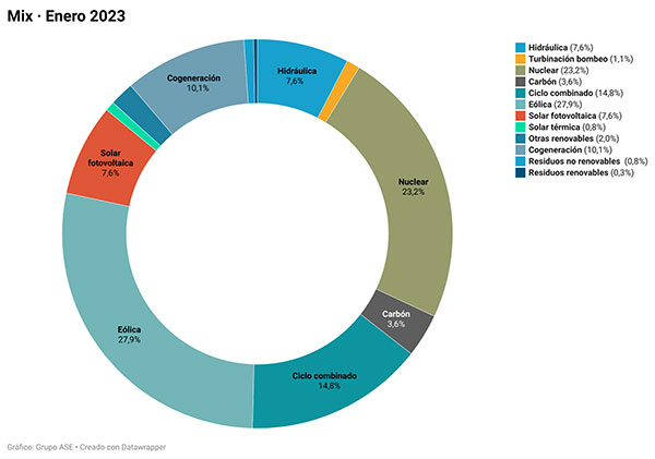 Grupo ASE ha hecho público su informe sobre el mercado energético del mes de enero. De acuerdo con los datos del informe, las renovables han vuelto a batir récord de generación en enero, reduciendo el precio de la luz, de tal modo que el precio eléctrico español es un 57,31% inferior al de las grandes economías europeas. Por su parte, los ciclos combinados de gas apenas produjeron en enero un 10% de la electricidad y solo fijaron su precio un 7% de las horas, frente al 30% de 2022. Además, los altos niveles de las reservas de gas provocan la caída de los futuros de gas y el mismo descenso en los futuros eléctricos.